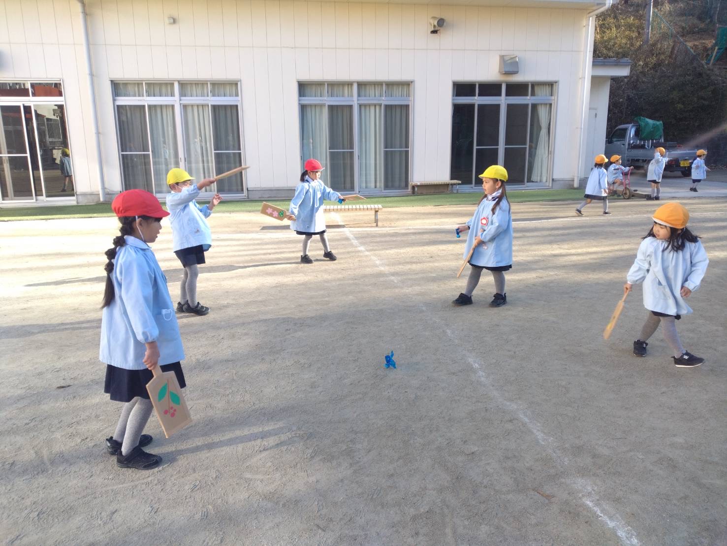 お正月遊びでは、手作り羽子板や手作り凧を使って遊ぶ様子がとても多かったです!