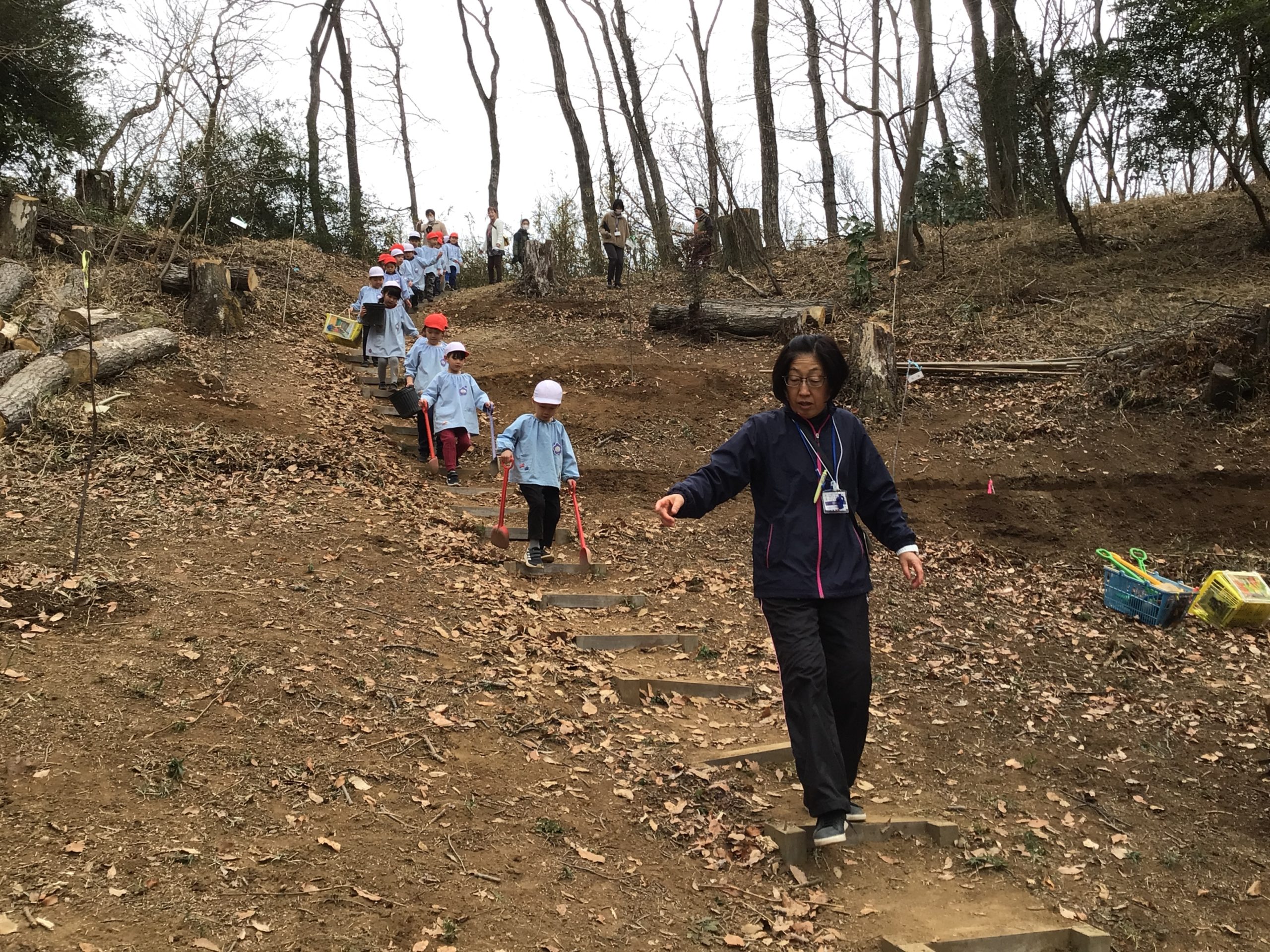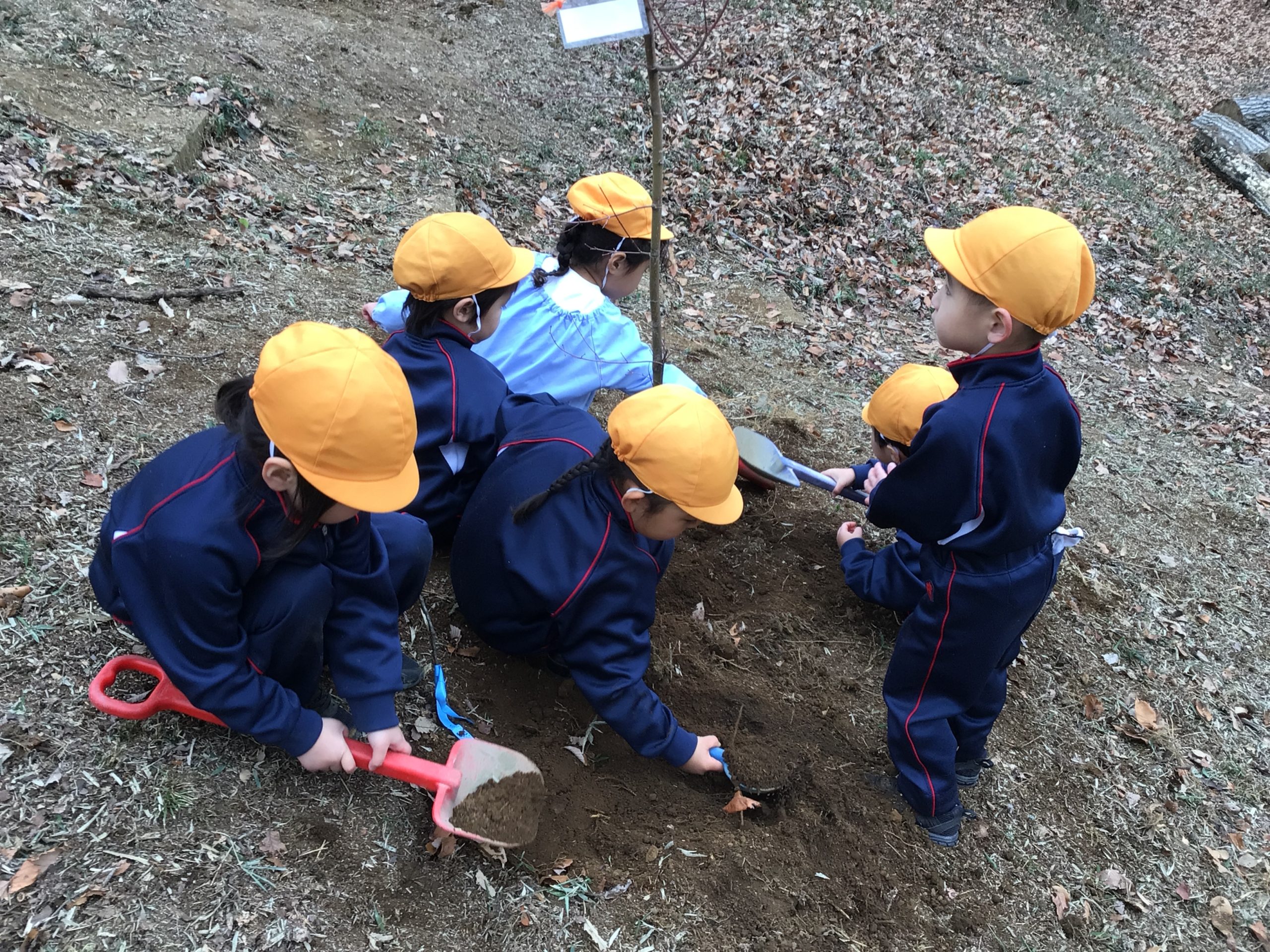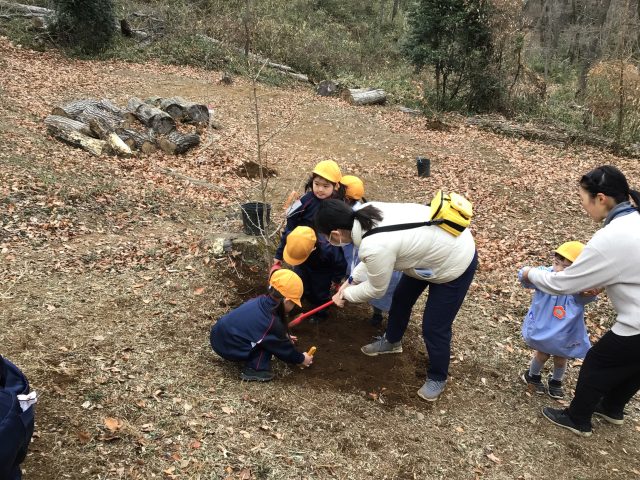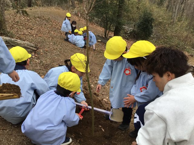 年長組から満三歳児クラスの子ども達みんなで大好きなわくわくの森に木を植えることができました!!!