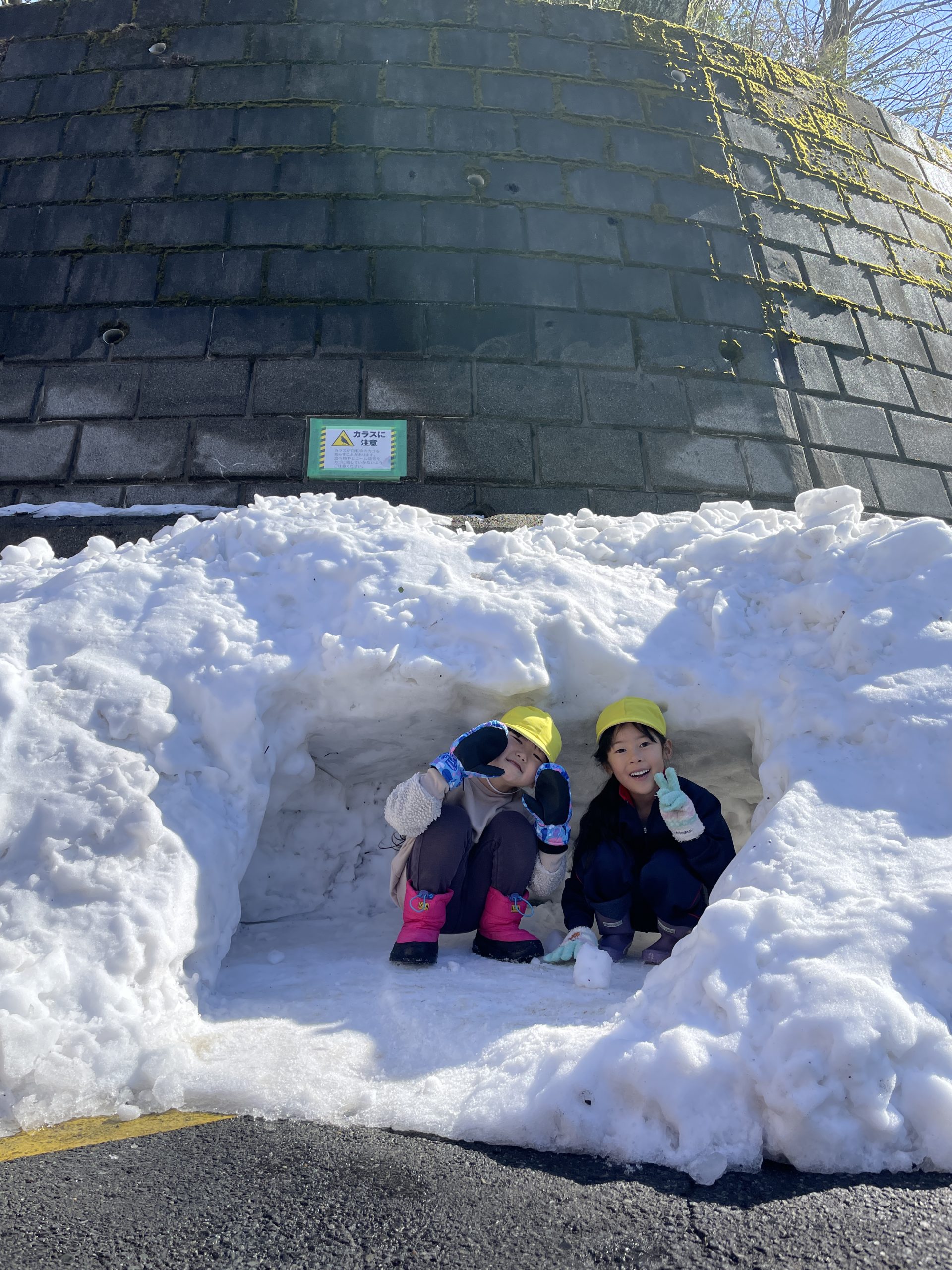 先生達が作ったかまくらにそーっと入ってくれていました!