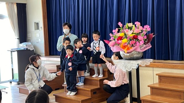 ♪「さよならぼくたちのようちえん」の歌を歌いました。