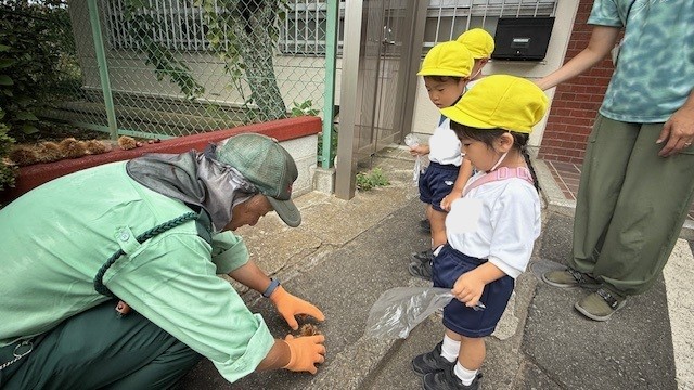 素手ではあぶないよと優しい警備員さんが軍手をはめて採ってくれました♪
