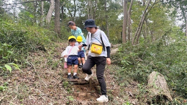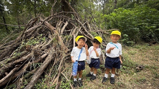 幼稚園の中で一番小さな学年、満三歳児クラスのひつじ組さんがわくわくの森へ探検に行きました!!