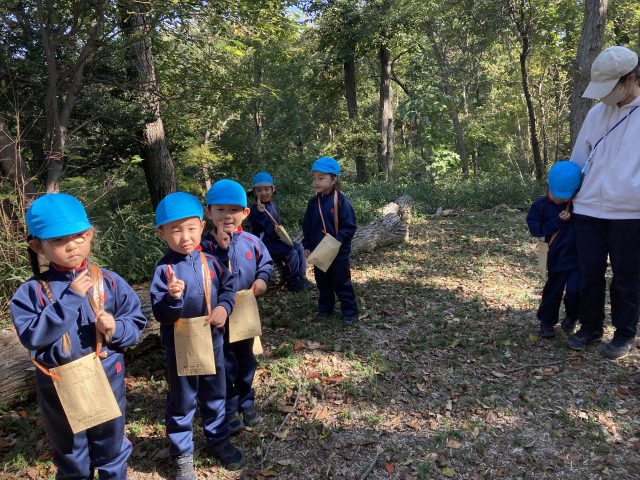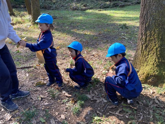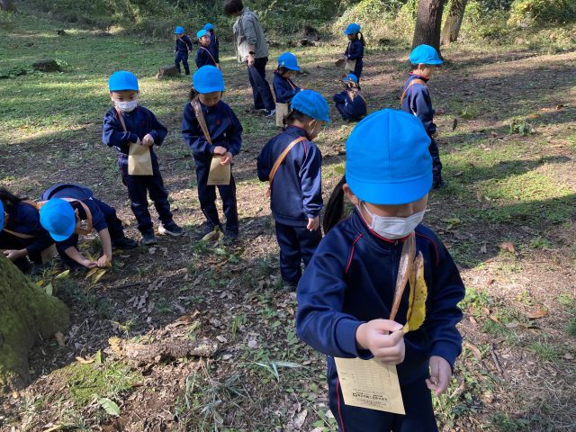 どんぐり拾いも楽しいですが、いろいろな形の落ち葉を拾い集めるのもこの時期のわくわくの森での醍醐味です🍂