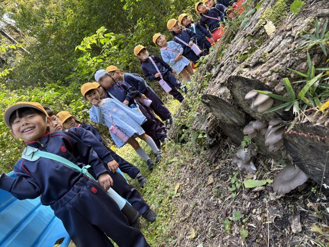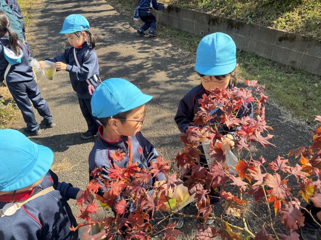 光塩日野幼稚園の山も朝晩の寒さでだいぶ色づき、落ち葉となって舞い落ちてきています。