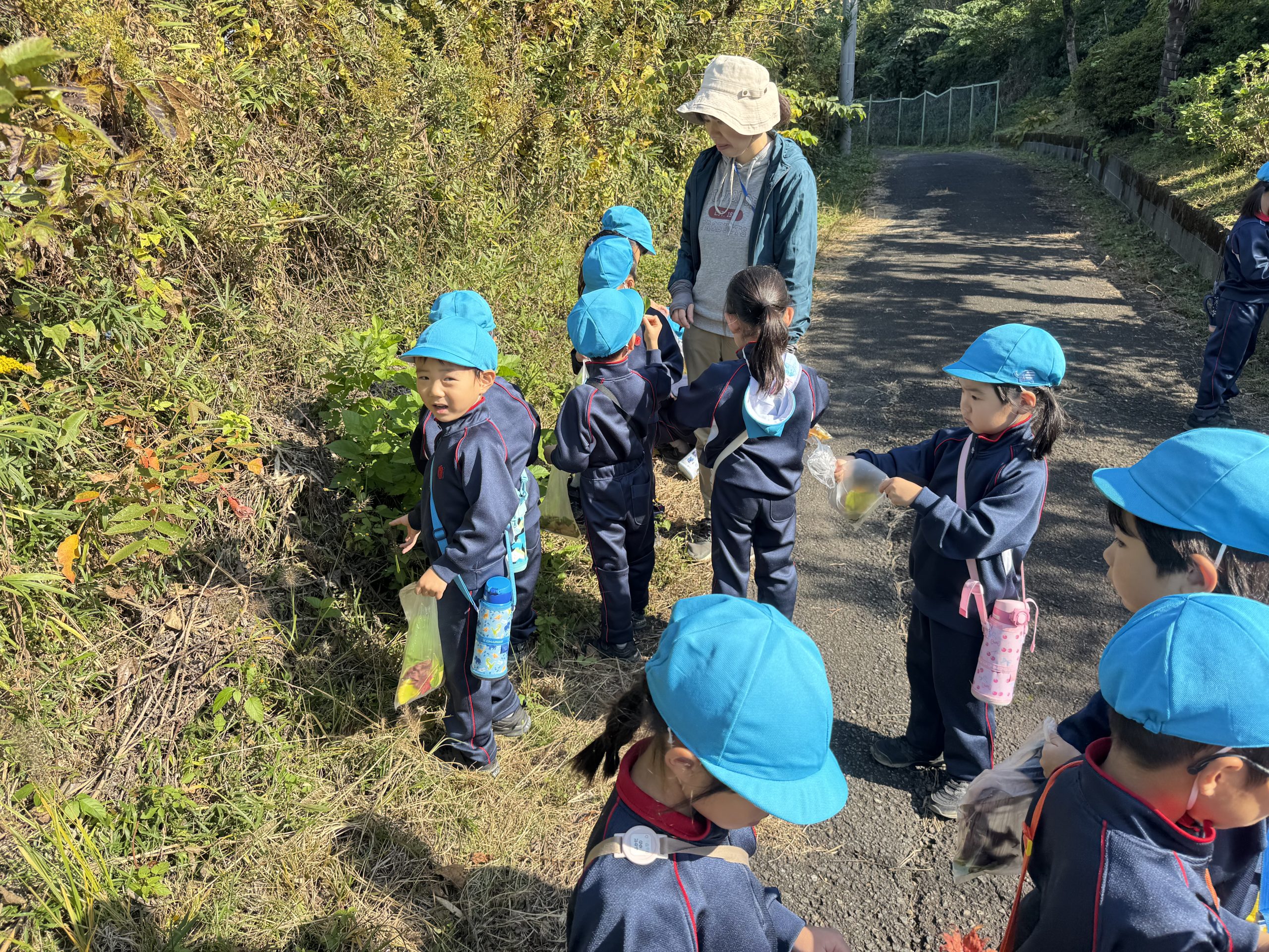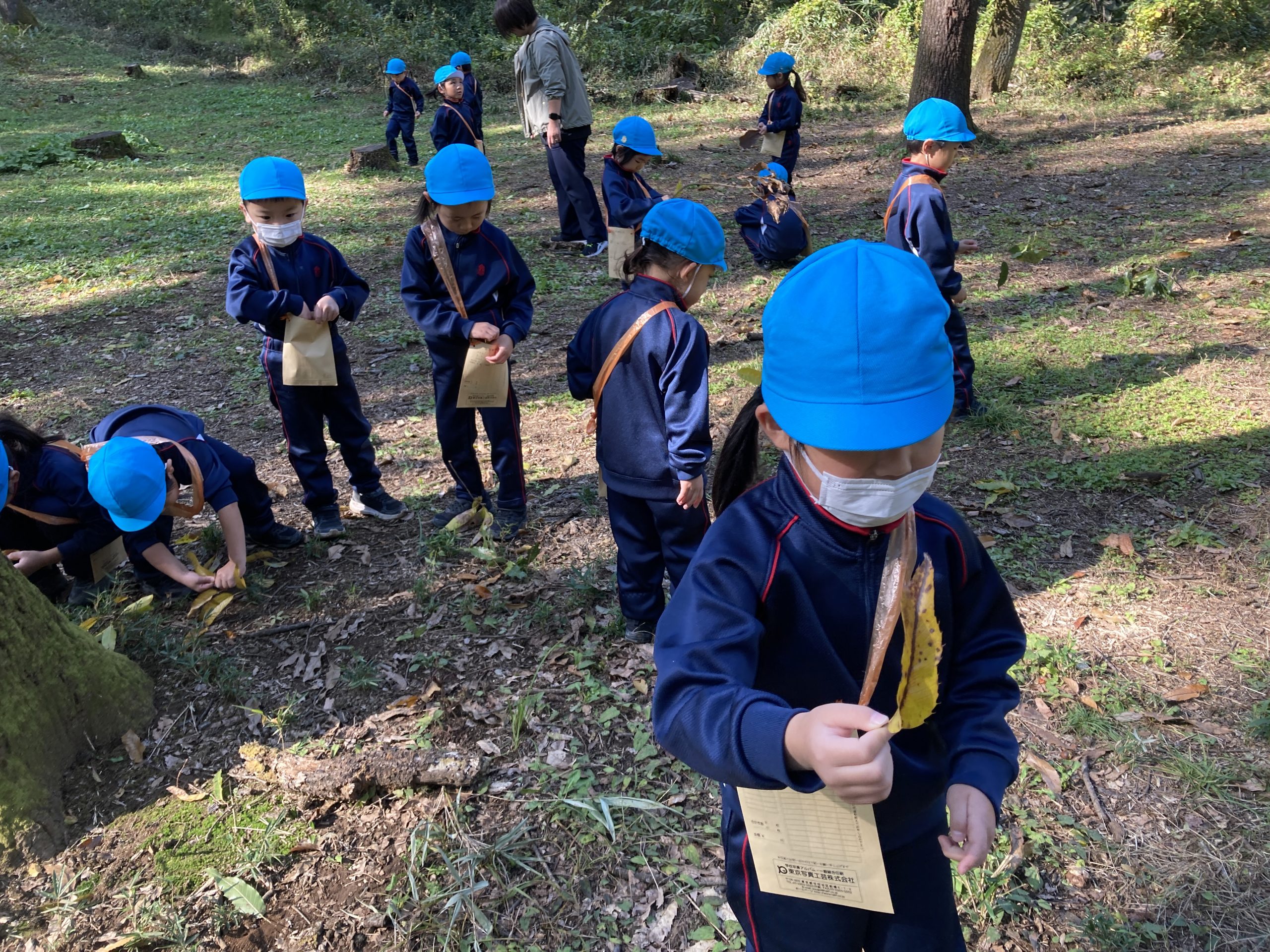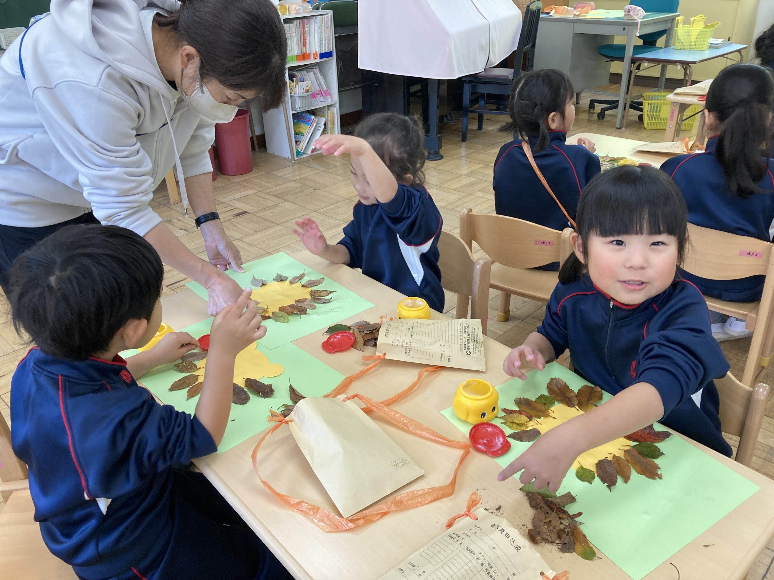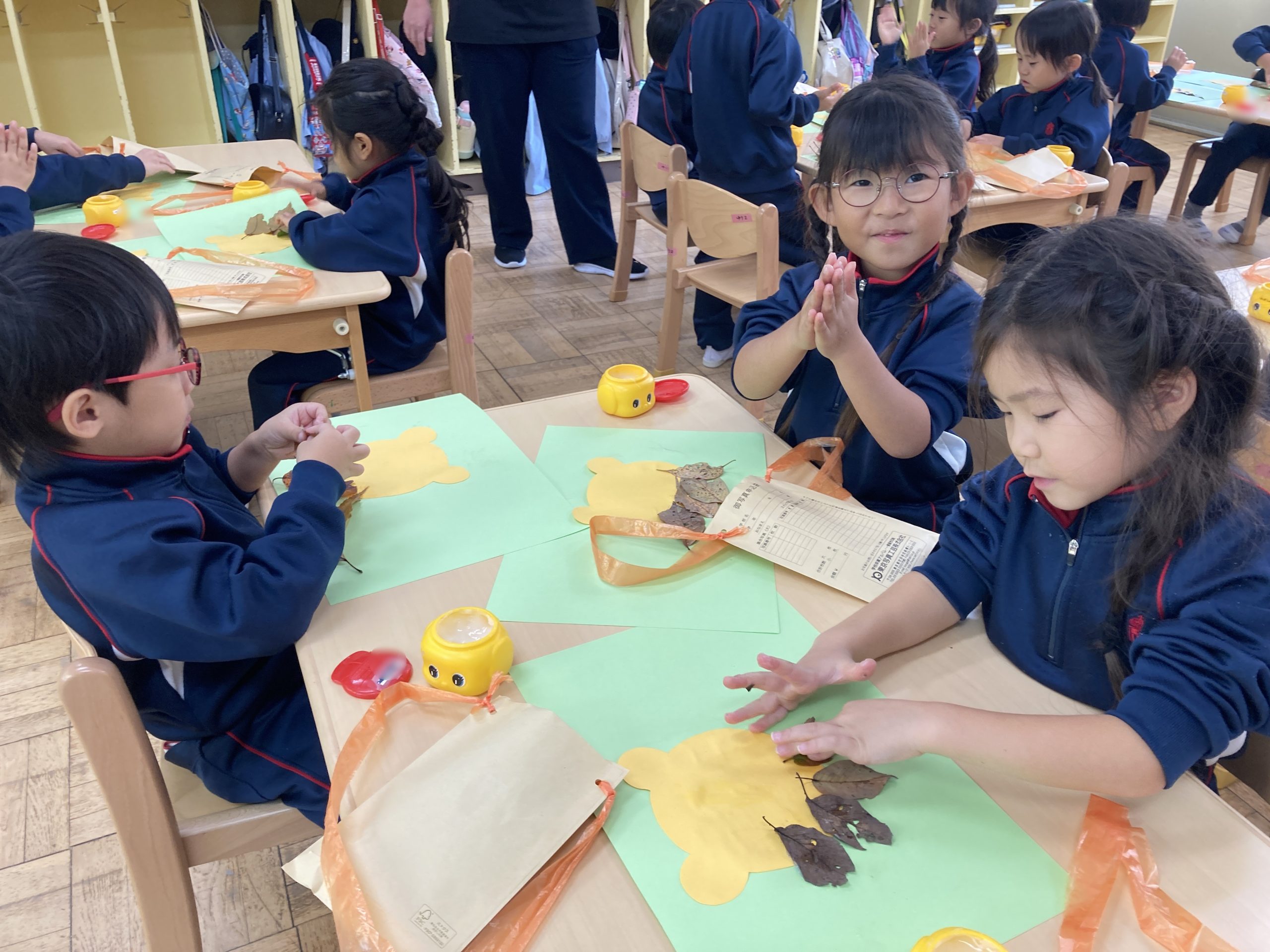 今回は年中ゆり組がわくわくの森や園周辺を散策していろんな形の落ち葉を集めました!