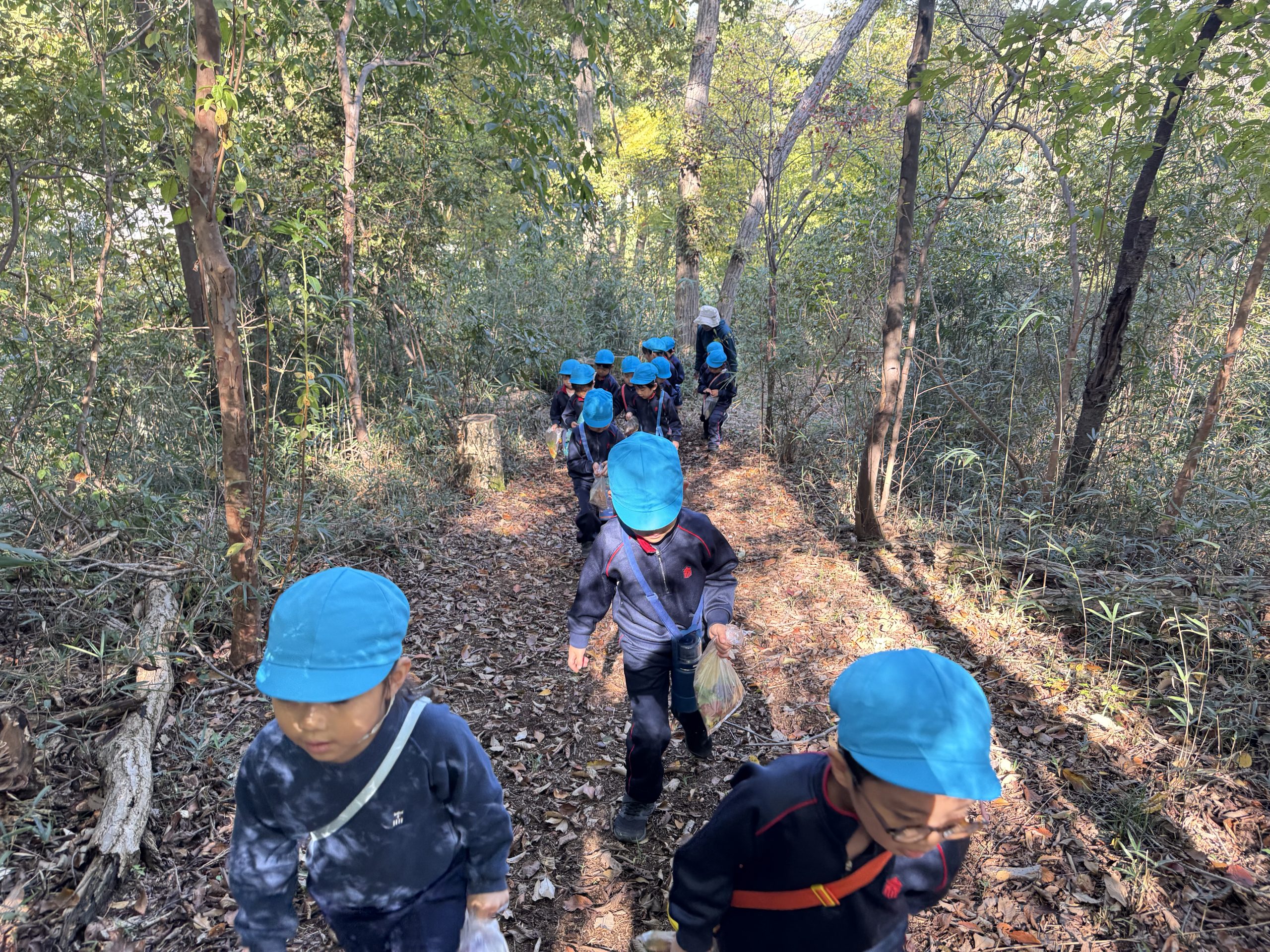 光塩日野幼稚園の山も朝晩の寒さでだいぶ色づき、落ち葉となって舞い落ちてきています。