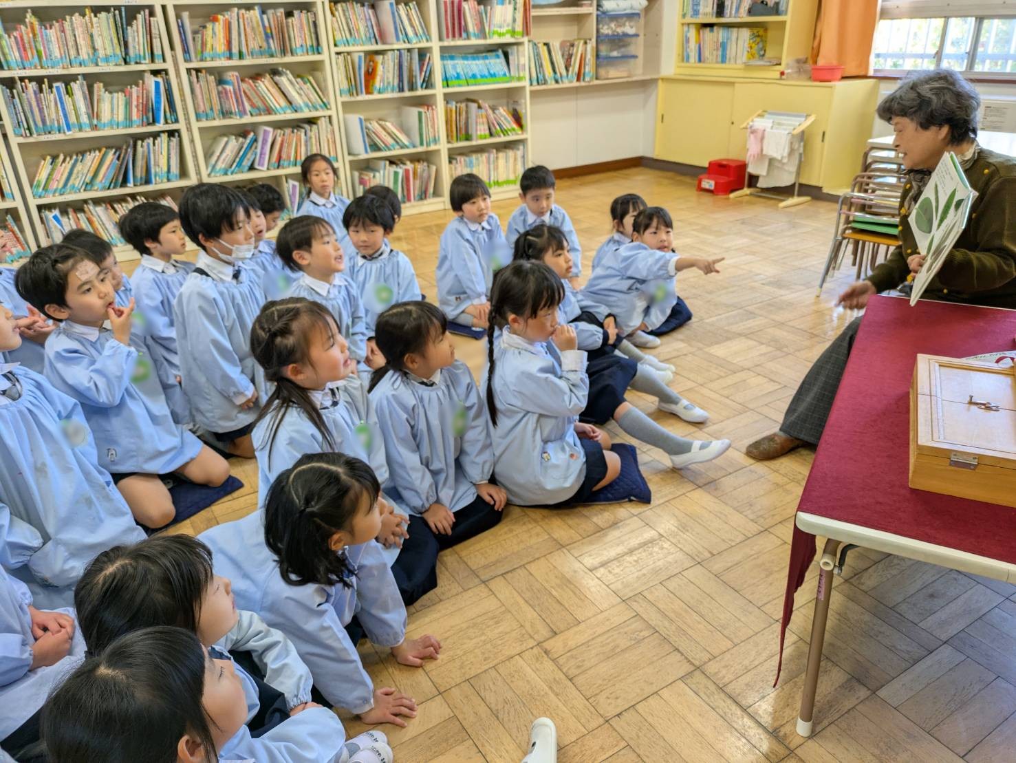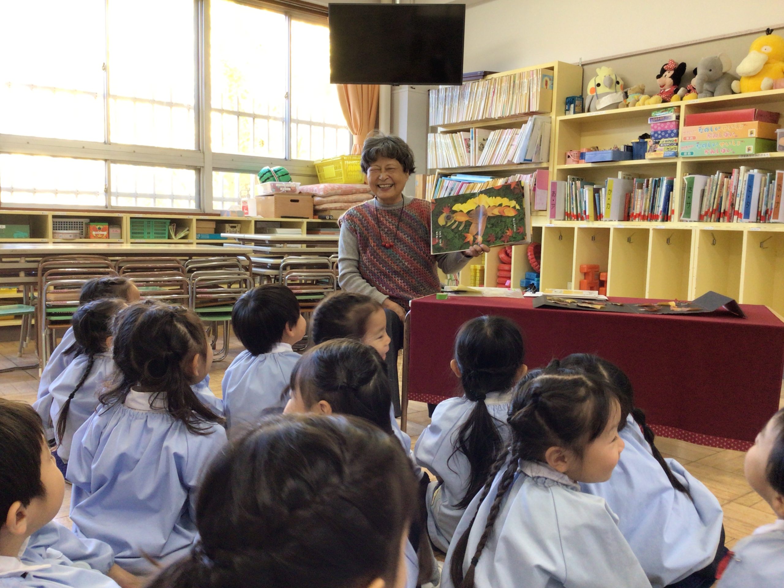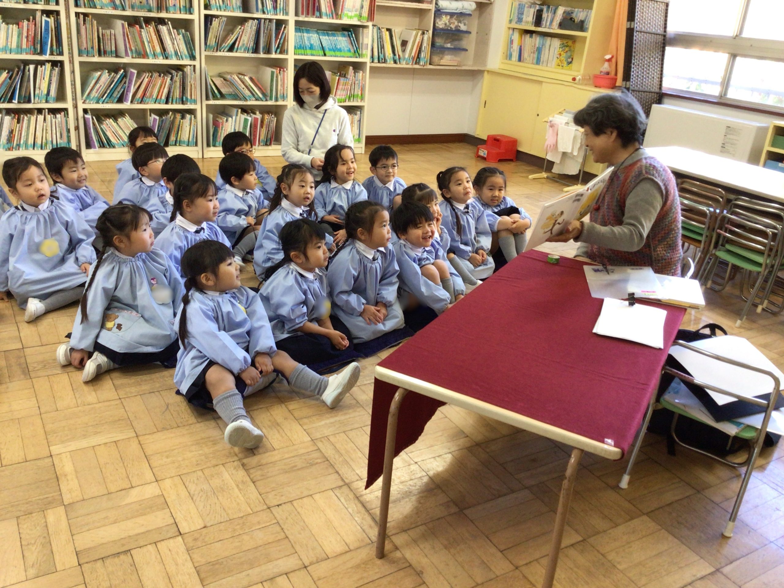 今週は、年長ばら組、年中ゆり組、年少ほし組とどの学年も読み聞かせの時間がありました!