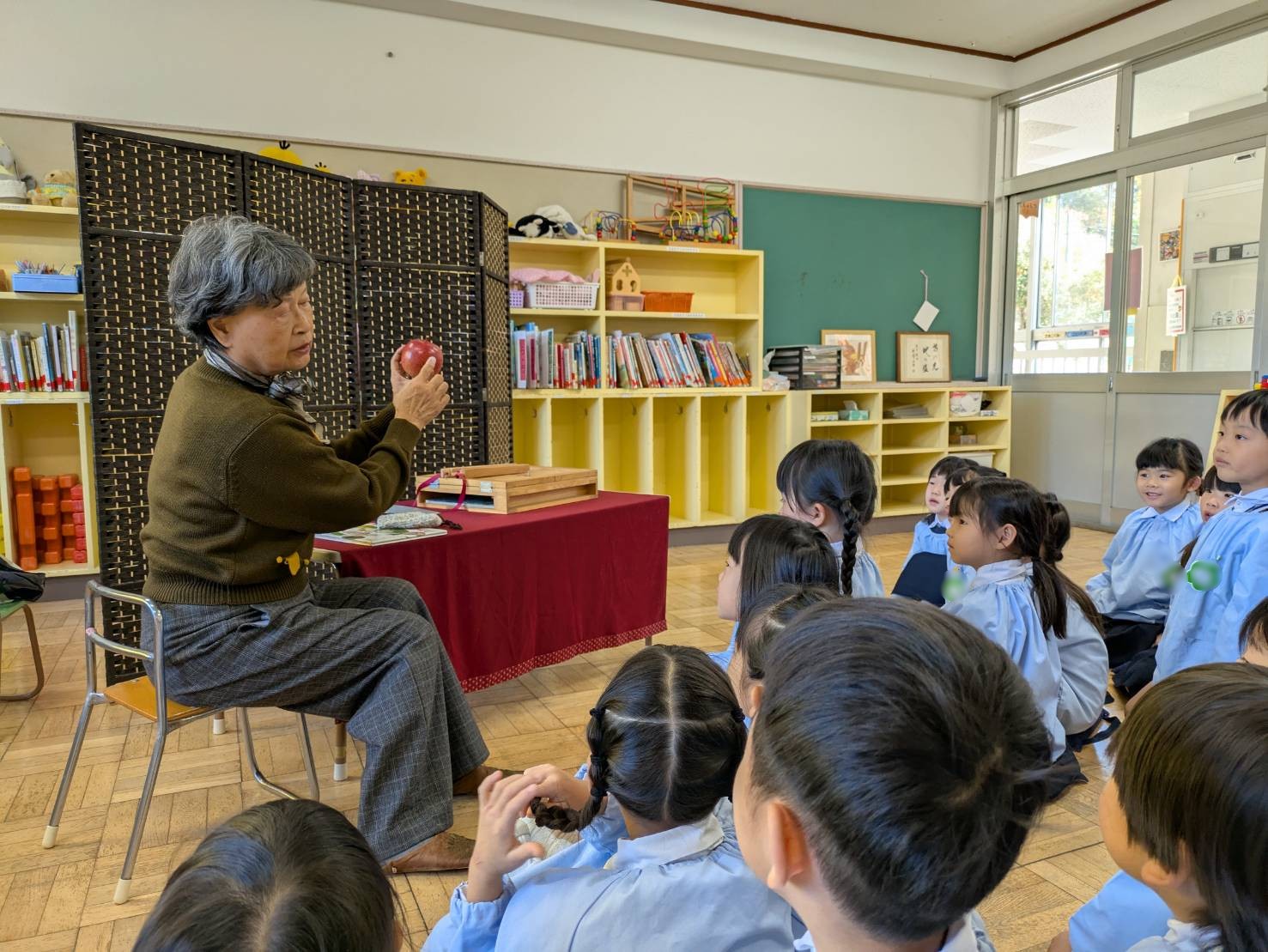 絵本だけではなく、読み聞かせの合間には果物の話をしてくださったり、