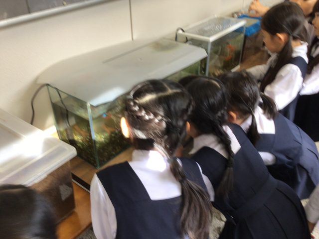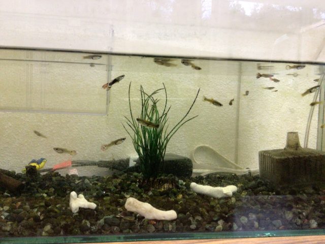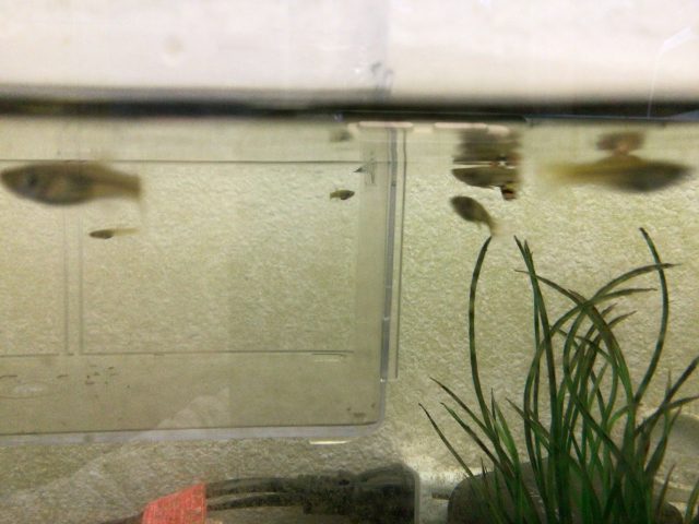 『お誕生!』ということで、幼稚園の受付にいるグッピーに赤ちゃんが生まれました!