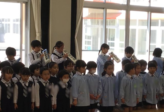 そして、そのあとは年長ばら組さんに『ありがとうの花』の歌とみんなで心を込めて作ったペンダントをプレゼントしました。