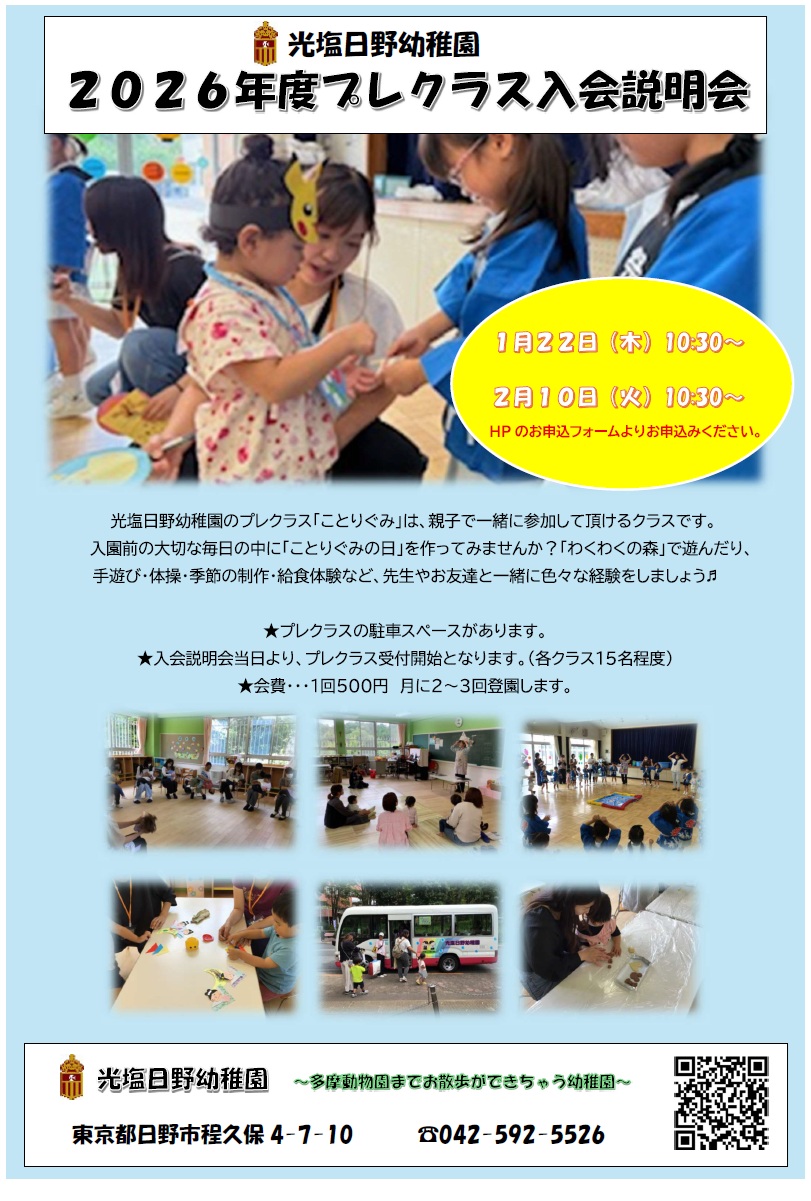 2026年度プレクラスクラス対象年齢のお子さまに向けた説明会です。