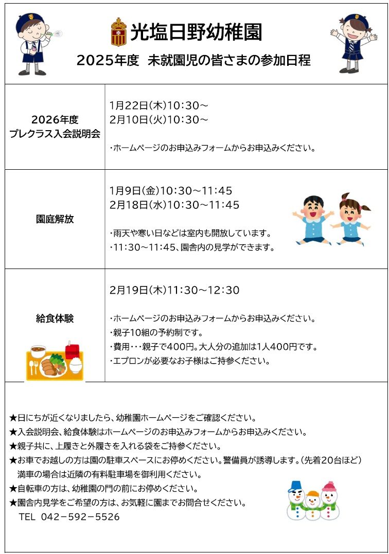 ※日にちが近くなりましたら、ホームページでお知らせいたします。